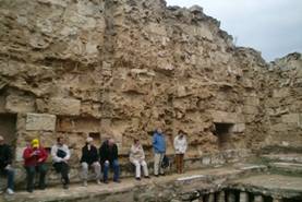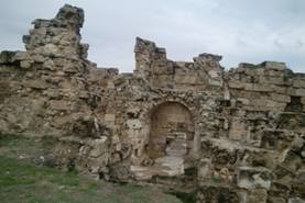 前天我們去過Karpaz沙灘,我們在夕陽里游水。今天我們來到Famagusta海灣的薩拉米古城,梅琳首先把我們帶到薩拉米的劇場、競技場、羅馬澡堂。那塞浦路斯的宮殿在哪裡呢?我們並沒有看到宮殿,沒有看到亞歷山大帝時、托羅米王朝時的宮殿,沒有看到荷馬時代薩拉米的盛況。它的廢墟都是羅馬人留下來的東西,劇場、競技場、羅馬澡堂。希臘時代的遺跡可能都葬在地裡頭吧!梅琳跟我們說,現在薩拉米成了考古園區,有很多地下的資料,還待挖掘。1957年才開始挖掘薩拉米到巴拿巴修道院,之間的墓塚,已有80處被挖掘,還待時日。